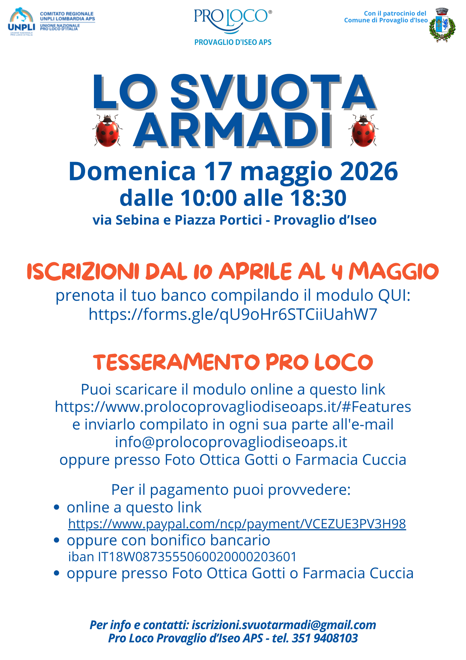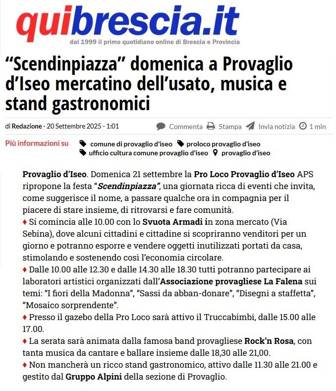 In data 3 Luglio 2023 si è costituita ufficialmente la Pro Loco Provaglio d’Iseo APS nata dall’incontro di sette donne provagliesi, a seguito dell’assemblea pubblica “Una strada verso la Pro Loco”.