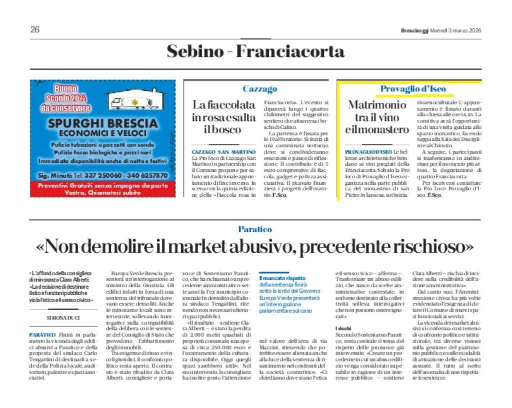 In data 3 Luglio 2023 si è costituita ufficialmente la Pro Loco Provaglio d’Iseo APS nata dall’incontro di sette donne provagliesi, a seguito dell’assemblea pubblica “Una strada verso la Pro Loco”.